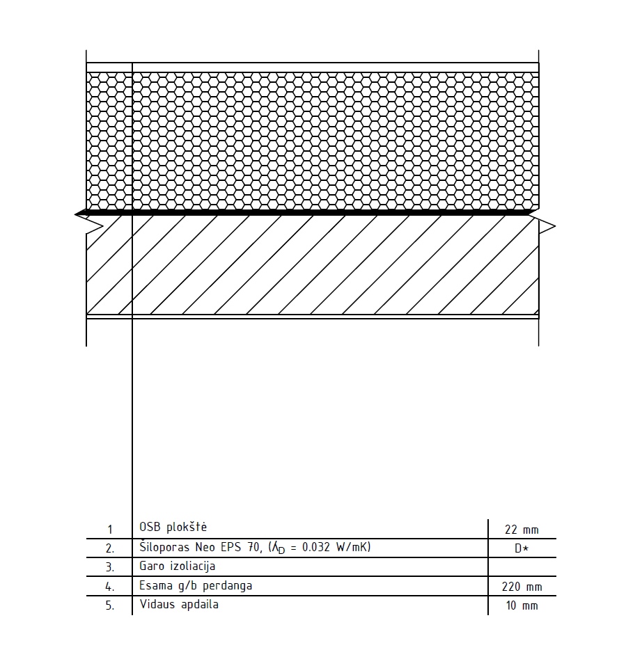 Šaltos palėpės gelžbetoninės perdangos grindis rekomenduojama šiltinti vadovaujantis šiuo brėžiniu