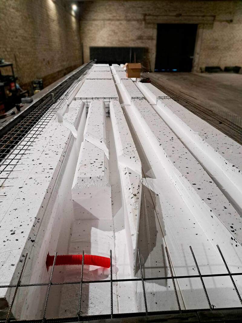 Įsivaizduokite pontoną kaip sumuštinį: išorėje - tvirtas betonas, o viduje - lengvas, bet itin patikimas plūdrus sluoksnis. Tas vidinis sluoksnis ir yra polistireninis putplastis - itin lengva medžiaga sudaryta iš 98% oro ir 2% stireno.
